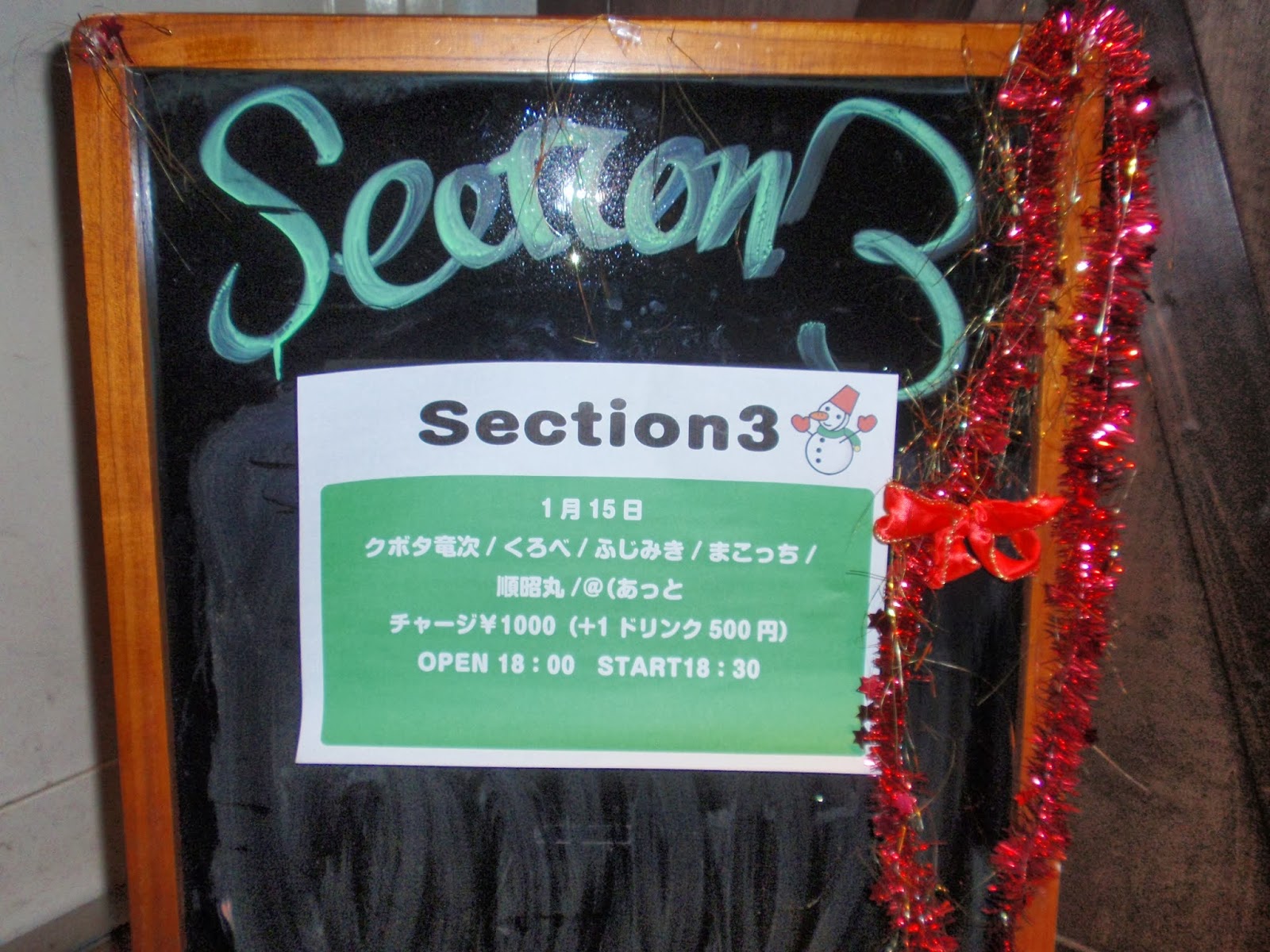 そしてなにより、今回初めてお邪魔した「SECTION 3」さん。僕の耳には、すごくここちよい「いい音」でした。音響など素人の僕が言うのは失礼ですが、僕の好みの「音」でした。できればこれからも「ツルハシの如く」春も真夏の歌いたいなと思いました。見に来てくれた方、共演者の方、Section 3のマスターありがとうございました!