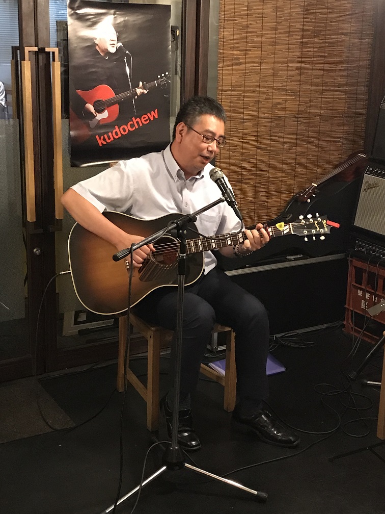 ブルースです。カッコいいです。僕には絶対できないプレースタイルと音楽ですが、なぜか馴染みもあるという不思議な雰囲気でした。多くのお客様に見られながら、緊張感のあるスタートと見受けられましたが、曲をこなす度に弾き語り中に魅せる渋い表情とMCでの笑顔による「緊張と緩和」を見事にまで表現されてました。来月もお付き合いいただきますが、また男っぽいブルースを聴けるのが今から楽しみです。