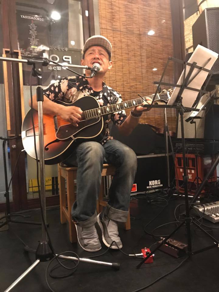蒸し暑い季節です。毎月第4金曜日の「リレー数珠つなぎライブ」ですが、毎度仕事帰りに会場「本町」ぽっぷに立ち寄ります。今回は若干遅くになりましたんで、急ぎ足での入店。そこから準備を始めたんですが、その準備中に汗まみれに。やはり夏本番を感じます。