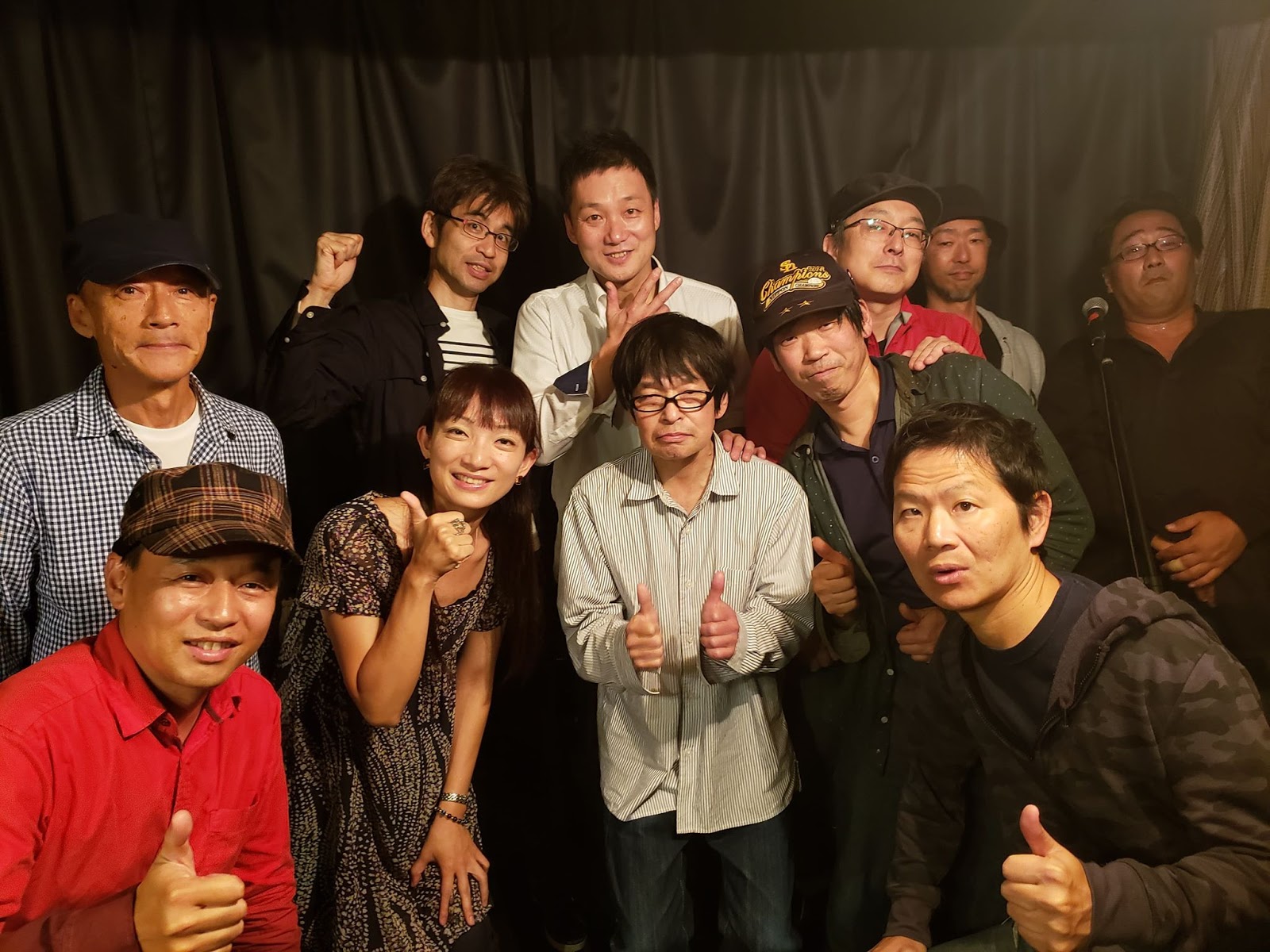 終わった後の記念写真。皆さんいい感じ。盛り上がり過ぎたのか、若干疲れの見られる方もいらっしゃいますね(^_^;)。出演者の皆さん、本当にお疲れさまでした。