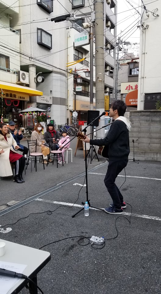 12月21日(土)は自身2019年総決算となるライブイベントでした。まず午前午後は、毎度お世話になってる「東淀川小松商店街」さんでのフリマオンステージ。到着すると、スタッフの方が昨年作ったCD「サクラのように」を会場に響かせていただいてて、嬉しい事この上ないです(^^)。こちらでは2ステージさせていただきました。