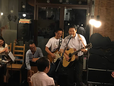 会社の音楽好きの方とのセッション。気合いの表情もカッコええです(^^)。ちなみに、また会社の音楽好きの方が達者なこと。こんな人が何人も同じ会社にいらっしゃるとは凄いですわ。ちなみに女性の方が何人か歌われてましたけど、またお上手で...。ただものではない方ばかりで、息つく暇がなかったです。これがきっと気持ちよい疲れの原因かも。